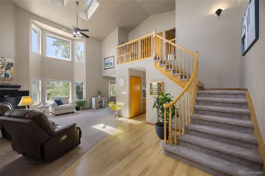 Come check out this amazing horse property, minutes away from Barr Lake State Park! Situated on just under eight acres, this home is a true example of country living at its finest. The land is ready for you to move right in, between the three fully fenced pastures and private fully fenced backyard. There is a 36X36 three stall horse barn with additional inside foaling stall, 12X24 loafing shed, storage shed, storage trailer, plus a road around the property has already been cut in for you. You'll be equally impressed by the home itself, boasting five bedrooms with a main floor primary, an office, amazing vaulted ceilings with an abundance of natural light, a walkout basement with a full second kitchen and second laundry, and so much more. The large deck is perfect for morning coffee or a wonderful Colorado evening at dusk. The septic and leach field have been redone in the last two years ...
