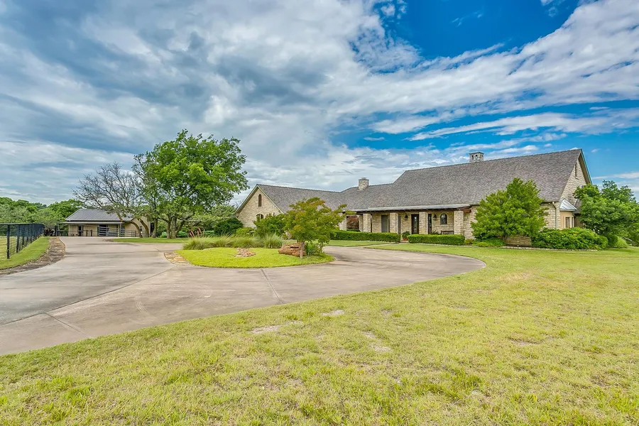 Gorgeous Hill Country inspired home on 7 acres! Located just north of The Walsh, this home offers gorgeous views of the countryside. The opulent chefs kitchen is complete with fireplace and cozy den. Large living room with exposed beams, incredible stone wall fireplace, wood floors, and walls of windows. Beautiful dining room with butler's pantry. Luxurious master suite with private wet bar and glorious spa like bath. A private living area off the master has beautiful floor to ceiling windows along an exquisite curved wall. Amazing library with see through fireplace. 2 large guest bedrooms down with game room up that could be a 4th bedroom. Spacious sunroom with wonderful picture windows overlooking the back pasture. 2 stall barn with tack room. Property is fenced & cross fenced in no climb wire. Amazing private setting. Great location just minutes to Ft. Worth!
