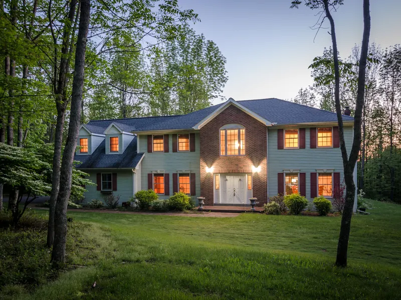 Quality built home on private 7 ac w views, pond and nicely landscaped. Access to 500+ ac public state forest. Oversized 2 car garage, RV parking. Premium 6-panel doors, trim and hardwood flooring. Fam room w/ fireplace. Huge master suite, walk-in closets, home office, master bath. Kitchen w granite counters, modern appliances, breakfast table w view! LL theatre, recreation area and wet bar.