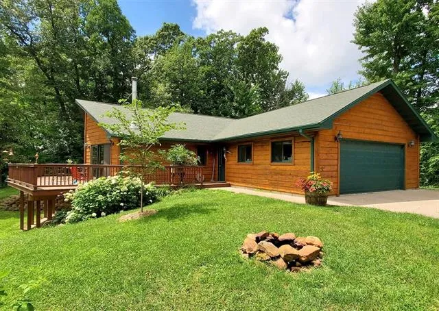 A Country Home perched high in the woods on 7+/- acres and has a view for miles across the Driftless beauty of Southwest WI. This gem of a home and location offers main floor living with a walkout basement, large deck, updated stainless steel kitchen appliances, Natural Gas for fuel, a heated 2 car attached garage, main floor laundry and 2 bedrooms, open concept kitchen - dining - living room with soapstone woodstove. The lower level has a large cozy family room, full bath with shower, 3rd bedroom (non-conforming), and utility/storage room. Outside, a leveled site is already prepared for a 30x50 +/- shop building if desired. A 3+/- acre field runs along the northern property line, and a yard shed is included.