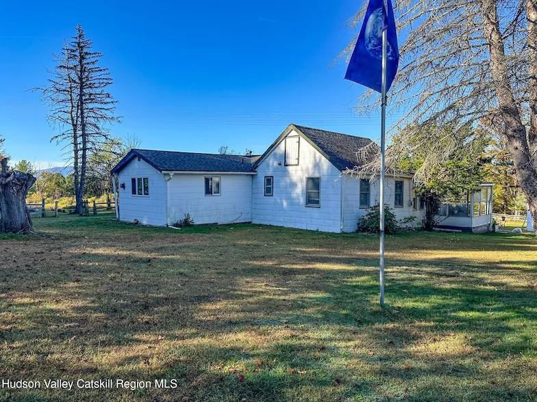 Bring the chickens, ducks, goats and horses to this sweet little farmette! Room for everyone on the 7 acres with pond. The cottage style home has 2 bedrooms PLUS a large additional room that could be and additional bedroom or home office. Enter into the glass enclosed porch then into a mudroom. The living room has a woodstove for those crisp winter nights. Step up to the kitchen and bedrooms. Mountain views are beautiful and I see a firepit in your future! House needs some updating but its perfect for that get-a-way or year round living. As an added perk; solar panels are owned not leased.