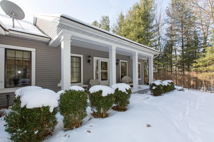WILDLIFE SANCTUARY - 2005 Custom Beuscher built ranch nestled on 7 acres of pines and woods and even a meandering river. Attention to detail !! 3 bedrooms and 2 1/2 baths with full finished walkout basement. Beautiful cherry hardwood floors, open concept, deck overlooking scenic views and wildlife. Three season room. Geothermal heating and cooling system. Main floor laundry and master suite. Oversized 3 car attached garage. Reverse osmosis, iron filter an water softener to remain with home. All kitchen appliances and washer/dryer to remain with home. Additional barn for workshop or to store extra cars and toys. Located near Hillsdale College. HOA of $50 per year. Reserved freezer in basement and refrigerator in garage.