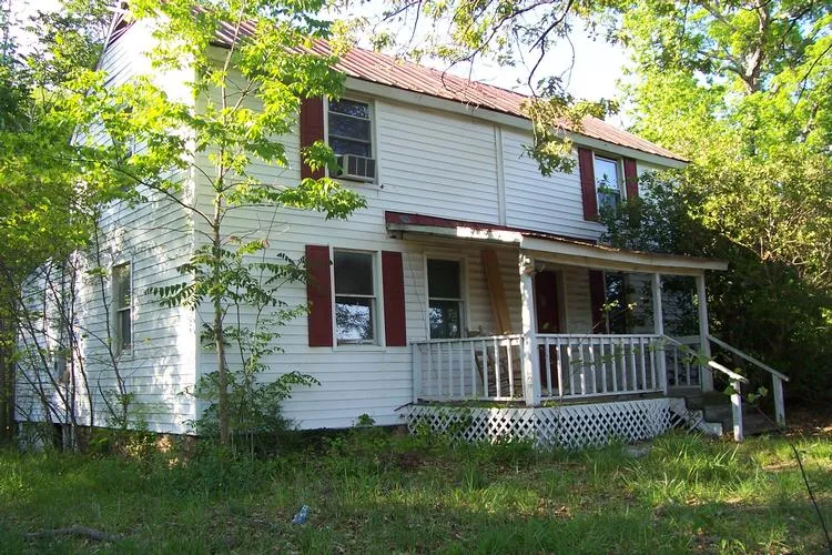 Restoration needed for this frame cottage. The home is nestled on an oak-shaded knoll with a view of grassland field. The parcel is mostly wooded with winding drive down the hill to a paved State road.