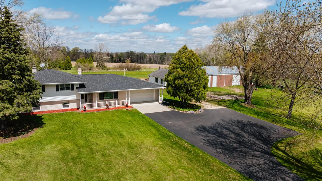 Bring your horses! This beautiful 7-acre country home is the one to buy! The kitchen with amazing views flows seamlessly (open concept) to the dining room which is open to the living room! Walking up a few stairs to the upper level you will find 3 nice size bds and a full bathroom. On the lower level, there is a bar with a fireplace, a bonus room, full bathroom, laundry room, and walk-out door! Wait there is more.....walk down a few more steps to a full basement with a workroom, wood shed room, and connected wood-burning stove! Outside you have a 36 by 60 outbuilding and a heated 26x32 garage!!! The roof is about 10 years old, and the furnace is 2021. There is a 2021 Generac whole house/shed generator! Secluded, close to shopping/restaurants- this will go fast. Schedule your tour today!