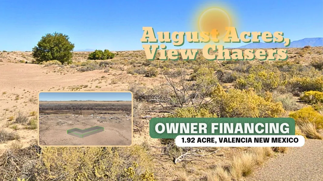 Looking for wide-open skies, privacy, and room to create? August Acres, View Chasers gives you 1.92 acres in Valencia County, 7 connected lots, and power close by- perfect for building, RV weekends, or chasing sunsets.