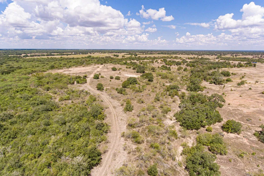 High elevations on the ranch provide great views of the surrounding landscape. A variety of oak trees and South Texas type brush are found throughout the property. A seasonal branch creek runs through a portion of the ranch and feeds into Rocky Creek. Enjoy the native wildlife, including whitetail deer, dove and hogs. Ranch soils are classified as very gravelly loamy sand with 1 to 5 percent slopes. Property includes a gravel pond and paved road frontage.