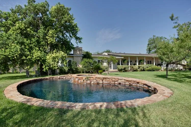 Improvements: A 6,600sq/ft home with 4BR - 3.5BA. Home has hardwood floors, two fireplaces, and raised ceilings. The yard areas surrounding the main house are immaculately maintained consisting of gardens, huge pecan trees, a splash of tropical vegetation, and lush St. Augustine lawns. There is a natural rock swimming pool & hot tub in backyard that overlooks the 3 acre pond and pastures.