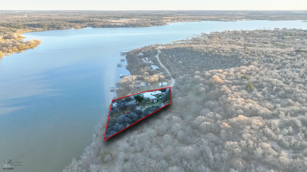 Stunning views and beauty! Imagine life in your 2 Bedroom Lake front home on 3 acres with direct Lake access and 67 additional acres attached! This serene, lush acreage is fenced for hunting and livestock with a barn, stock tank, Staff water meter, and electricity. Unimaginable views of Lake Leon which offers great Catfish and Crappie fishing, as well as boating and skiing. House has Aerobic Septic System, Central Air with Heat Pump and perfect for your Lake Getaway or full-time residence. Two, very large Primary bedrooms, generous living area with fireplace and a wall of windows facing the lake. So many opportunities come with this well-loved home and land. Purchase as is to reside, hunt, raise livestock and live the lake life or divide and develop with 3-4 more lakefront properties possible. House is at the end of the road, providing ultimate privacy.