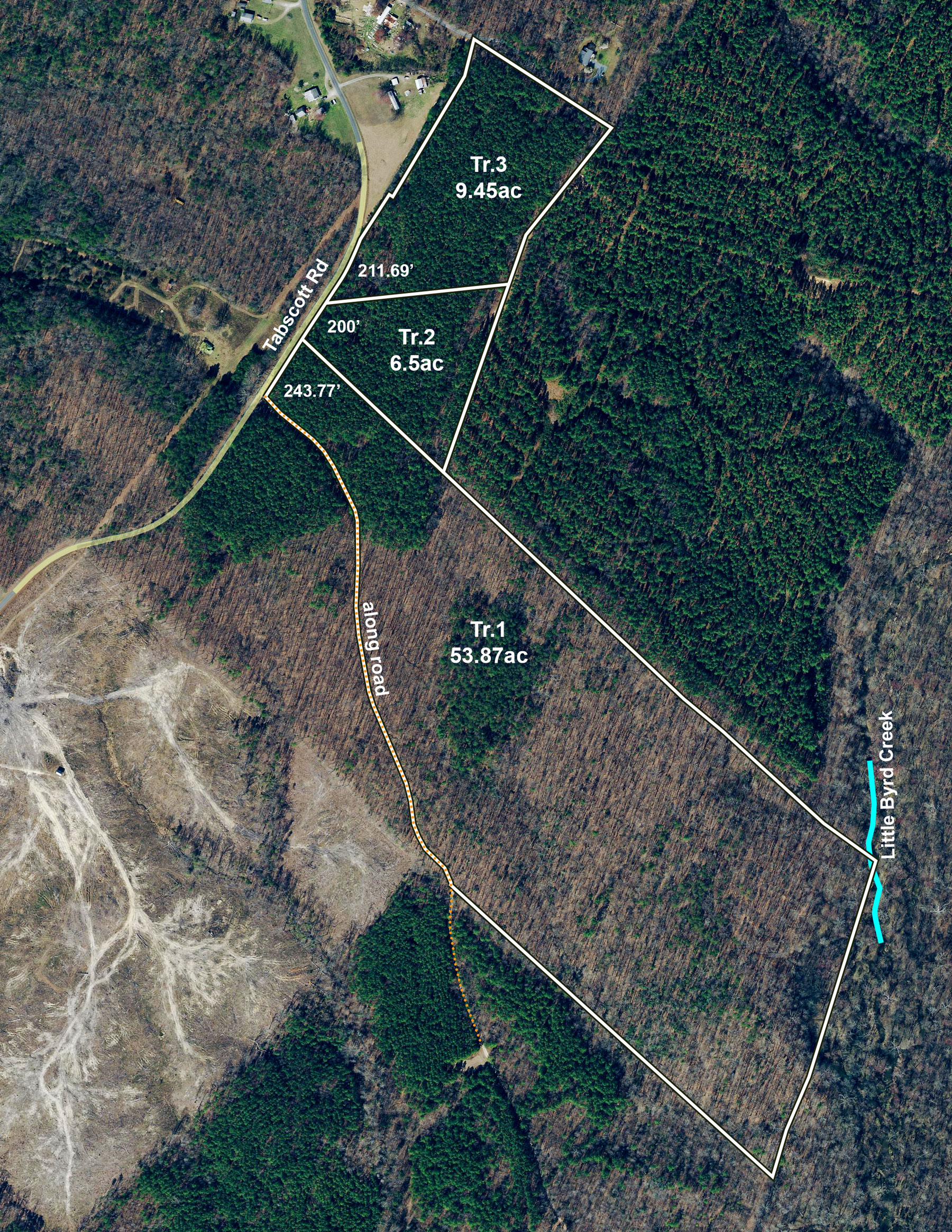 Nice building tract with 211 of road frontage. Majority in Loblolly pine.