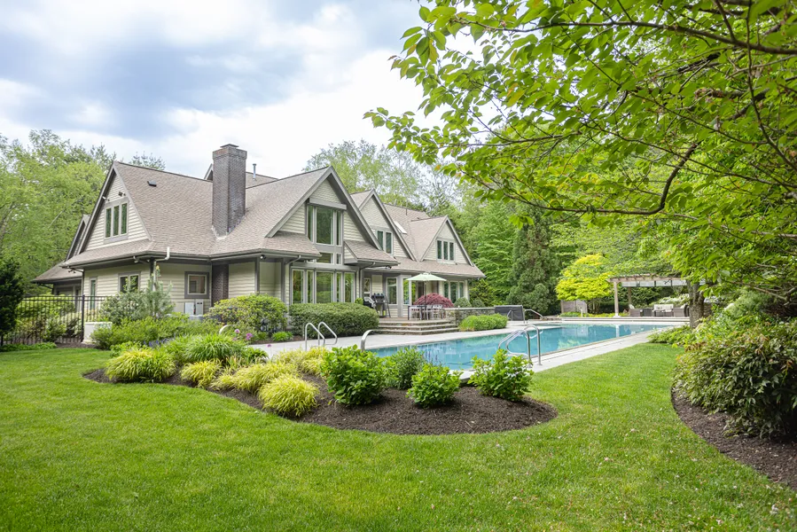 Tucked away in the exclusive High Hawk Estates in East Greenwich, 70 Pheasant Drive is an elegant contemporary with a beautiful flow of indoor and outdoor features. Soaring cathedral ceilings and oversized windows welcome the sunlight and beckon you to enjoy the outdoor oasis beyond. This is a home begging to entertain your guests. Sited on two wooded acres graced by mature trees and a garden featuring azalea, lilacs, hydrangea. Grill and enjoy cocktails on the bluestone patio or mahogany deck. Unwind in the hot tub or swim in the unique self-cleaning gunite pool anchors the outdoor space. Inside, well-appointed living awaits. Highlights: an immense family room with a soaring stone wood burning fireplace, a private home office, and primary bedroom with a spa bathroom. Maple hardwood floors on this and the upper level add a touch of refinement. The centered and well-designed kitchen overl...