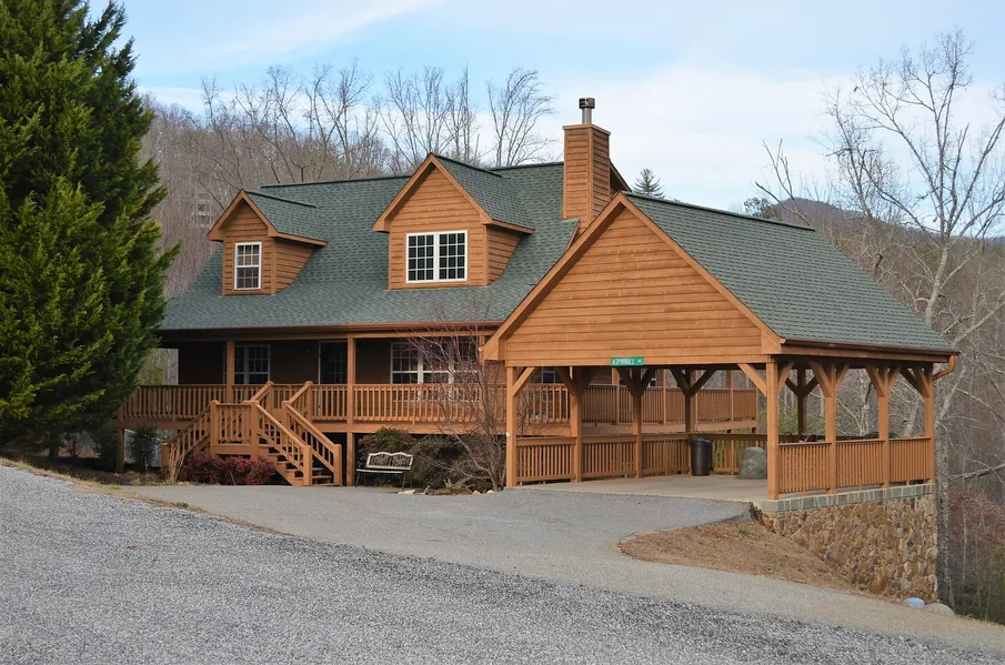 Trackrock Area Mountain Home. Beautiful 3/3 Cabin style home situated on 1.52 acres. Views of mountains & pasture. Double decker porches and main floor has full wrap porches all the way around. This floor plan offers Cathedral ceilings w/ T&G ceiling, mix of sheetrock and wood, large view dormer enhances the great room. Wood burning fplc. Open bayed dining area, generous kitchen. Hickory floors and cabinets, solid surface counters. Mountain laurel accents the staircase to the large loft. 2 master suites. Tall vanities in the baths. Lower level is finished with BA, Game room, Bedroom area, and laundry. Fenced pet friendly yard, 2 car carport, paved parking. Convenient to USFS, horseback riding, hiking, mountain biking, Brasstown Bald, water falls, etc. Under 10 miles to town. Quality construction and tastefully designed. Don't let this one get away.