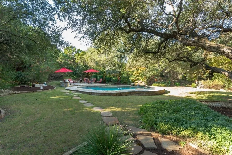 Beautiful custom home on over 1/2 acre in Overlook Estates!One story floor plan with Jack & Jill upstairs.Light & open spaces w/ stone accents,tons of windows,fireplace,kitchen (updated in 2015) overlooking living area & backyard. 3 bedrooms down(3rd can be used as an office)and 2 up.Beautiful updated master suite and SPA bath. Large backyard w/ covered porch,beautiful salt water pool w/sun deck, & century oaks makes for the perfect outdoor oasis...great space for ENTERTAINING. Easy access to 183A, HEB, Costco, and restaurants within 5 miles.