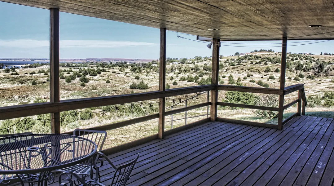 Covered Deck with Wilson Lake & Smoky Hills Views