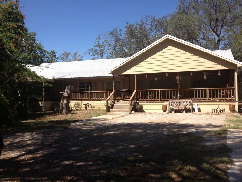 Adorable mobile home is set on a concrete slab, has a metal roof, covered carport and a couple of storage buildings. The home has a large covered patio for enjoying the sights & sounds of nature and watching deer play. There is an abundance of space in the home with 4 bedrooms (a parent's retreat off the master), 2 living rooms, a formal dining room and a breakfast nook. The ranch style home is nestled among large oak trees which provide lots of shade. The home is supplied with well water and there is a second well near the old barn. The property is almost half wooded with large oaks and half pasture with smaller oaks and mesquites and has one tank.