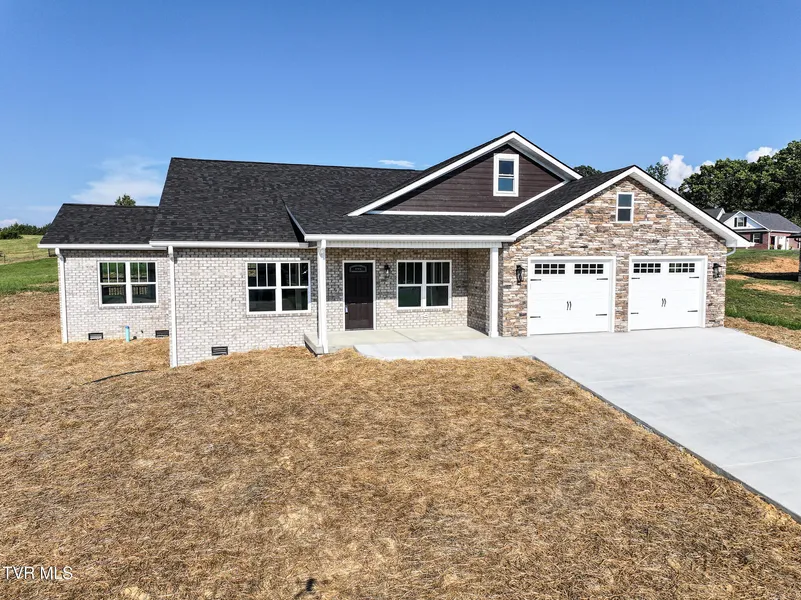 Brand New Brick Beauty in Morgan Farms! Welcome to this stunning new construction 3-bedroom, 2-bath home perfectly positioned in the desirable Morgan Farms subdivision—offering breathtaking mountain views and a super convenient city location. The exterior showcases timeless curb appeal with a beautiful blend of brick, stone, and LP Smart Siding for lasting durability and style. Step inside to an exceptional open-concept floor plan that offers both space and functionality. The main living area is thoughtfully designed to include a spacious living room, dedicated study nook, and a bright sunroom or dining area—ideal for entertaining or everyday comfort. Enjoy premium finishes throughout, including custom cabinetry, quartz countertops, luxury vinyl plank flooring, and sleek stainless steel appliances. The gourmet kitchen offers ample cabinetry, extensive counter space, and a large quartz-topped center island with bar seating. The luxurious primary suite features a generous walk-in closet and a spa-like en-suite bath with quartz counters and an oversized tiled walk-in shower. Two additional well-sized bedrooms and a second full bath provide plenty of space for family or guests. Designed for ease of living, the home features a main-level, step-free entrance from the attached double garage, as well as a conveniently located laundry room. A concrete driveway completes the package. Don't miss this move-in ready gem that blends comfort, style, and convenience in one of the area's most sought-after neighborhoods! All information taken from a third-party source (courthouse/tax records) and to be verified by the buyer/buyer's agent. Drawn in lines are approximate. Some elements (fires in fireplaces, twilight shading, lighting, etc.) have been added/modified digitally. Rooms noted have been virtually staged for decorating ideas only, not to scale or representative of any product. CubiCasa app is used for floor plans, dimensions are not guaranteed. Taxes to be assessed.