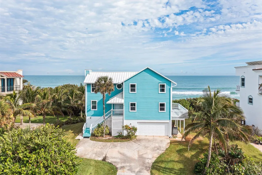 Great buy for this direct, updated oceanfront home along some of the most beautiful stretch of beaches around! Spectacular ocean views from kitchen, living areas, primary suite & 2nd bedroom. Expansive covered deck and private beach crossover. Nice high elevation, a healthy dune, new AC (4/24), newer metal roof and impact rated windows/ doors (both 2020), all help to make this a secure oceanfront investment. Current owner has also had a successful vacation rental program with the property, $85,000 plus gross revenue in recent years. Reverse Osmosis community water supply but no HOA fees! This home was also featured on HGTV's Beach Hunters.