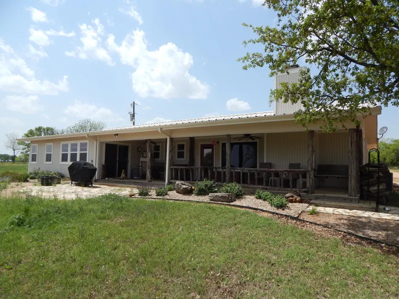 Here is a very nice, 2604 sf, 3 bd 2.5 bth frame ranch style home. Contains nice large bedrooms, with a super nice den, with large wood burning fireplace, and tin covered vaulted ceiling. Also, a nice kitchen, dining area, and a bonus room, currently used as a game room. There is a nice large porch on N side of home, overlooking a nice size tank, and the beautiful countryside. Other improvements include a nice approx 9600 sf hay barn, with attached equipment shed awning, with water and elec. In addition is a 300 sf tack room, with awning, adjoining a very nice set of pipe cattle working pens, and water and elec. Attached to back of home is a very nice all metal workshop, with elec and water. Attached to that is a large 2 bay carport, currently used to store farm equip. There are 4 nice tanks, and great fences! Property is fenced and cross fenced for rotation purposes. Improved grasses include, Coastal, and some Love Grass. There are 2 very good water wells! One had been used as an irrigation well, at one time, and the other is for home. There is also a nice pecan orchard. This would make for a nice horse ranch!