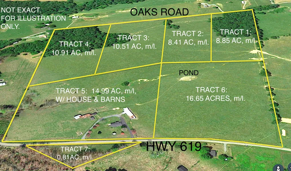 Overview of Land: This is strong farmland currently under fence with 3 springs & pond. Vacant tracts offer beautiful home sites, park-like setting & some on Oaks Rd partially wooded with good timber remaining with property & beautiful stream. County water & electric available, plus all tracts have blacktop frontage.