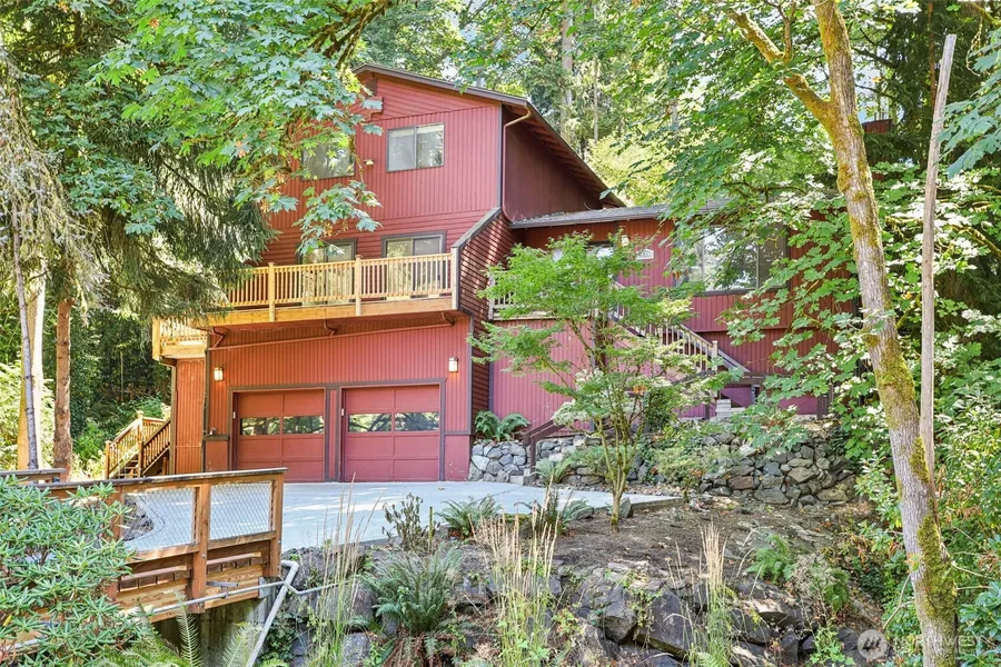Unique custom built home sitting on quiet treed lot, only minutes to city of Lake Forest Park. Main floor includes upgraded Kitchen, Large living/Dining area, family room, huge 4th Bedroom with 3/4 bath and private deck. 2nd level has 3 more bedrooms and 2 full baths. Enjoy outdoor living on this custom wrap around decking made from South American hardwood, EPAY. The highlight of this lot is the bridge crossing over year round Lyons Creek for access. Amenities close by including I-5 and two Lite Rail Stations. Seller is providing Buyer with a American Home Shield warranty on home for One Year from date of closing.