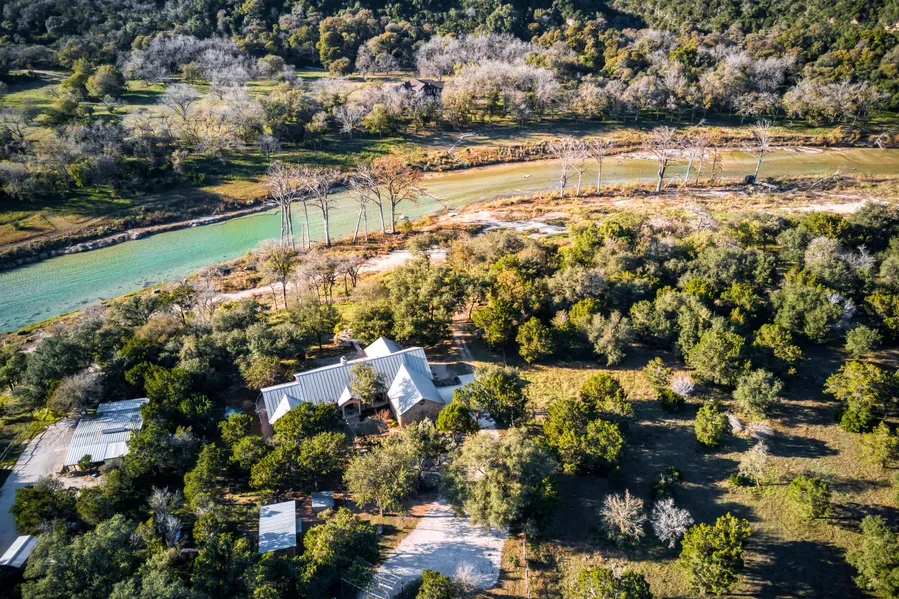 Gorgeous Blanco Riverfront property with easy access to 330' of your privately owned riverfront! 8.5 miles from either Wimberley or San Marcos. Private, security gated, Riverbend property enjoys ag-exempt tax valuation. Custom built touches throughout and meticulously maintained. This home flows inside and magically draws you to the shaded entertaining area overlooking the river. MAKE SURE YOU SEE THIS ONE. YOU WILL NOT BE DISAPPOINTED!!