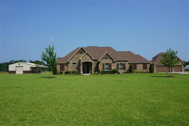 Incredibly beautiful, 3732 sq. ft. custom-built, one-owner home on 6 spacious acres just outside Sweeny, TX. This impressive home boasts dramatic faux wall treatments, as you enter through the very grand, 8' wooden front door. The drama continues as your eye catches the multi-level tray ceiling in the dining room, to the exposed brick, double-sided fireplace, to the border on the dining room floor. You'll be inspired by the attention to detail from the corbels used throught the home, to the tumbled marble accents, to the vessel sink, to the gorgeous granite slab on the kitchen island, to the 5 x 7 master shower complete with more tumbled marble accents! 1200 sq. ft. barn w/porch, 3-car detached garage, media room, surround sound, security cameras, too much to list!