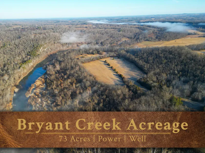 With over mile of crystal-clear Bryant Creek frontage, a newly cleared build site, electricity on site, and a well, Martin Bend offers one of the most usable and ready-to-enjoy river properties in Southern Missouri near Dora. Located where the county road dead-ends at the river, this diverse 73-acre tract features expansive gravel and sand bars, fertile hay bottoms, and a mature hardwood ridge with breathtaking views. Approximately 15 acres is a river bottom hay field with only 5 acres of that technically in the flood plain (but has not showed signs of flooding in the most recent record-breaking years). The hay fields sit high, and the timbered edges gently slope to the river... all of the river frontage is accessible, which is a river property rarity.