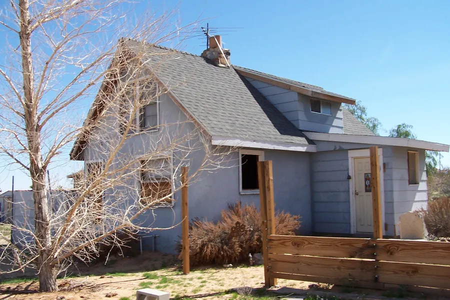 This is a fantastic 2.3 acres that is just off of Reche, a paved road. There are two homes on the property, both are fixers. They both have potential, and the two story blue Victorian house could be outstanding. I can see these both fixed up and they can be great for either rentals or perfect for an extended family. They are being sold in its present condition. Seller has never lived there, will not be conducting any repairs. Both homes are one bed, one bath homes and they are on opposite ends of the property for complete privacy. These homes are priced to sell, buy two homes for the price of one. The views are fantastic and the property is only about 12 minutes to downtown Joshua Tree or Yucca Valley. Check out the Homestyle Renovation or 203K loan options with your lender. Get cash for your renovation costs and requires just 3.5-5% down pay...