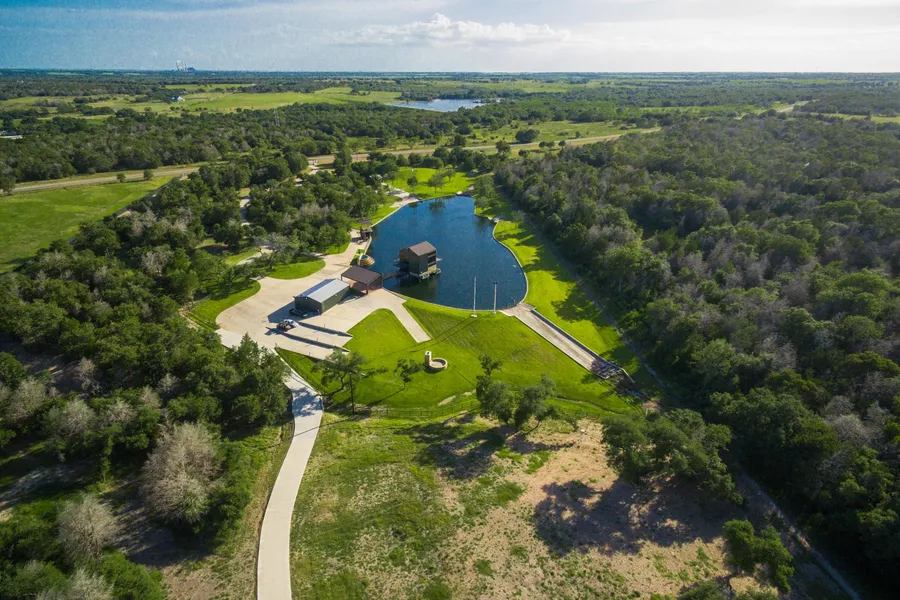 OWNER FINANCING AVAILABLE! You've seen it on the Discovery Channel, and NOW is your chance to own one of the most beautiful and unique properties in Texas. Welcome to the Floating Glass House located in Round Top, Texas. From the creative mind of a highly respected, and sought after Construction Mogul, this stunning property is without compare. An impressive entrance leads you down the concrete driveway lined with beautiful trees opening to scenic views in all directions. The Diamond of Northern Fayette County sits atop a Man Made four Acre Lake, thirty feet deep, and stocked with enormous Bass and Catfish. This lake is a true masterpiece surrounded by a concrete bulkhead and accented with a beautiful stone that compliments the entire property. Features include an electric boat lift and a stone waterfall that cascades water through all four levels of illuminated stone with sitting pool at the top.