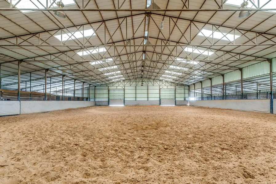 Approximately 14 plus or minus acre horse training facility conveniently located between Bridgeport and Decatur on N FM 51. This turnkey trainers paradise offers indoor and outdoor arenas, show barn, turnouts, 3 mare sheds with paddocks, 10 pipe runs, hot walker, feed storage silo and beautiful views. The main barn has 17 12 by 12 show stalls, 6 12 by 18 foaling stalls, wash rack with heated water, tack room, office with bathroom, concrete hallway. The indoor arena is 120 by 90 and fully enclosed with large garage doors and solid curtains wrapping the inside of the arena, excellent ground. Outdoor roping, cutting or cowhorse arena is 125 by 350 feet with roping boxes and return alley, even offers a viewing box. The three large turnouts have Morton buildings for mare sheds that are a spacious 36 by 36 feet. Trailer parking and easy access off of the paved highway. There is a cute bunk hou...