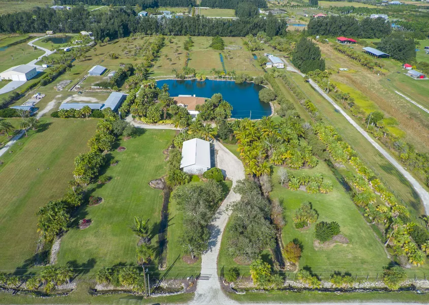 Experience a rare blend of residential serenity and commercial potential on this stunning 10.8-acre property. Nestled amidst breathtaking landscaping, the main home features 3 bedrooms, 2 baths with concrete block construction, new roof, accordion shutters, and open floorplan with spectacular views of the 1.5 acre stocked pond. An additional 2800-plus square foot detached garage/warehouse with 4 garage bays, full bathroom, finished living space and recreation rooms. Business and office opportunity with detached 1560 square foot office building with built out offices and bathroom. Multiple storage barns and pole barns with nearly unlimited covered parking and enclosed storage options.