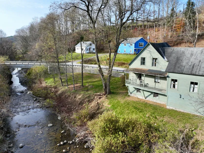 This charming historic New England home has been recently improved upon and brought back to life by its current owners, yet is ready for a new chapter! Located just outside of the heart of Corinth, VT, a township historically and recently featured in a Hollywood production, this home blends a historic property within a charming township with some acclaim and waterfront! The Tabor Branch passes along the boundary of this property before continuing underneath the recently re-constructed stone bridge that create the start of Chicken Farm Road, creating an incredible ambiance of running water and an incredible sight from either the covered porch or the various windows of the home. A detached barn/garage provides two parking spaces along with additional parking space on the lot. Upon entering the home, a mudroom with interior access to the walkout basement greets you, followed by the dining/k...