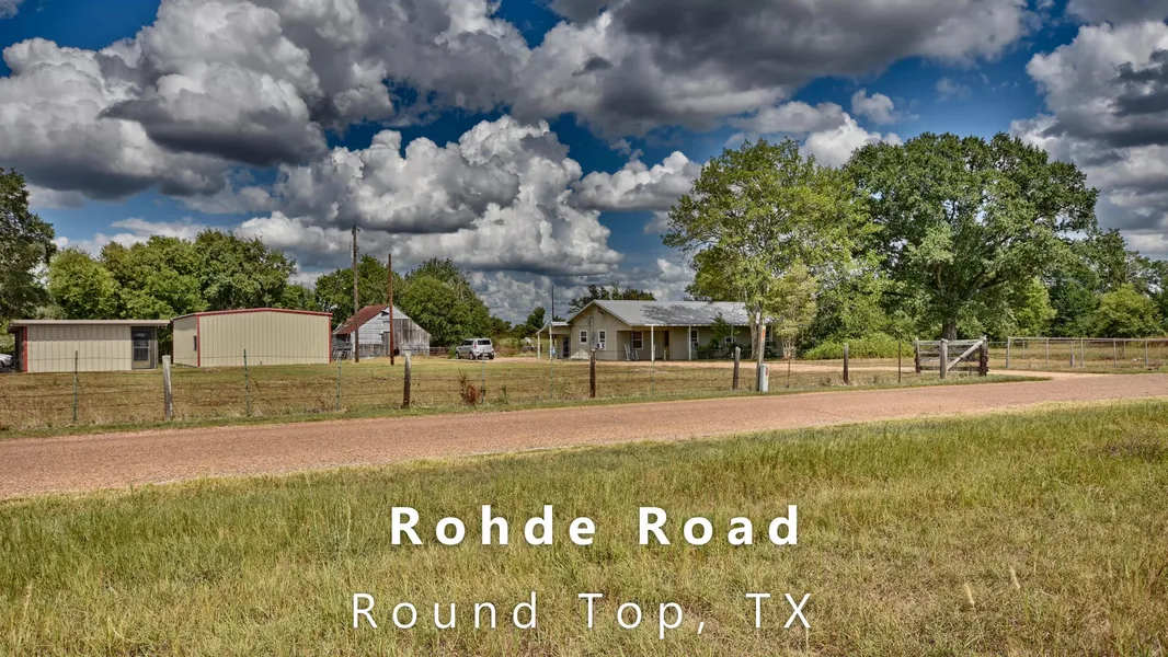 Whether you come to Round Top for relaxation or business, this 25.5 acre tract can do it all for you. It is on Rohde Road near the Warrenton Antique Fair but just off the beaten path to avoid the traffic and noise. It has a comfortable 3 bedroom, 2 bath home surrounded by large trees to block out the extreme temperatures. It also has clusters of trees all along the front of the property and tree lined fence lines. In addition is a large storage/shop building with high ceilings and 5 tall overhead doors. The floor is concrete and the building is serviced with 110 and 220 power for all your electrical needs. There is also a smaller storage building with carport and a wonderful antique barn with studs/beams over 14 feet tall made out of one piece of wood. The property is ideal for an investment whether you want to transform it into an RV park like the property across the street, or storage buildings or some other commercial venture. The seller is also agreeable to selling 10-12 acres improved pastures with street frontage on Marburger Lane that can have its own entrance to this second tract. Priced right and ready to go, you will find plenty on this property to fall in love with.