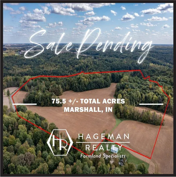 Located 9 miles Northeast of Marshall, IN, 75.5 total acres, 32.93 FSA tillable acres, and 42.57 wooded acres. This property sits just north of Sugar Creek on High Bridge Road and settled between Turkey Run State Park and Shades State Park. This beautiful piece has ample mushroom, turkey, deer, and other wildlife. This is a very diverse property with many opportunities.