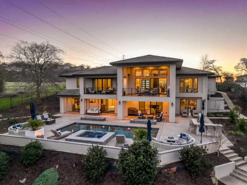 LUXURY LIVING WITH STUNNING VIEWS AT SERRANO COUNTRY CLUB. Discover this exceptional home with breathtaking hillside views and abundant natural light. Designed for elegance and comfort, this home features 14-foot ceilings, new hardwood flooring, and designer lighting. The expansive great room opens to a balcony with built-in barbeque, perfect for alfresco dining. The chef's kitchen boasts granite slab countertops, built in Miele espresso machine, brand-new Wolf and Sub Zero appliances, pot filler, wine refrigerator, and walk-in pantry. The main-level primary suite offers balcony access, serene views, a spa-like bath with a soaking sub and walk-in shower. The lower level includes two bedrooms, a home office with a kitchenette, and a flex room leading to the backyard oasis with a modern pool, built-in spa, new outdoor kitchen, and fresh new landscaping. Backing to a greenbelt with biking and 17 miles of connected hiking trails, this energy-efficient home includes owned solar and custom automatic blackout shades. Plans for pool house are available. Experience luxury living in this tranquil setting!