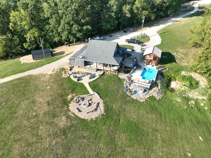 This working farm is a true gem that must be seen in person to fully appreciate! Situated on 76 acres of land, the property features rotating pastured fields currently housing horses and cattle, a riding pen, tack shack, cattle working area, and a horse training area/go-kart trail. Numerous ATV/UTV trails for exploring the expansive land. Additionally, there are two cabins that could be utilized as Airbnb rentals, scattered mature trees, and a convenient barn with stalls. The home itself boasts three bedrooms, with two located on the first floor and one upstairs loft bedroom serving as the primary with its own full bathroom and private balcony. The first floor of the home offers two spacious living rooms, one with a vaulted ceiling and a wood-burning fireplace.