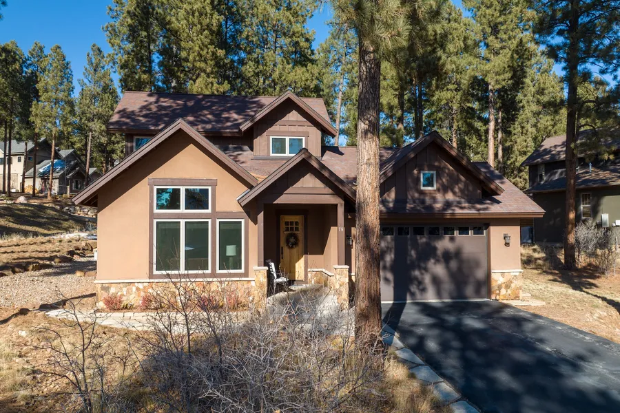 This custom built residence combines the quality and luxury of a million-dollar home within an efficient layout featuring 3 bedrooms and 2.5 bathrooms. The main level boasts an open floor plan with hardwood walnut and slate floors, alder doors and is complemented by a stone gas fireplace in the living room. The high-end kitchen is equipped with stainless steel appliances, granite slab countertops, and alder cabinets. The walnut floors extend into the primary bedroom located on the main level. The master suite includes double sinks, a marble vanity, a free-standing tub, and a separate shower. Upstairs, you will find two spacious bedrooms and a bright full bathroom showcasing marble countertops and a beautifully tiled tub/shower. The property backs onto open space, ensuring added privacy, and features attractive landscaping, including a flagstone patio, a privacy fence, and a motorized retractable awning. In 2011, this residence won first place in the Parade of Homes for its category, and was also selected as the Judge's Choice. The Edgemont Highlands subdivision offers exclusive fly-fishing river access and miles of hiking trails that wind through the tall pines.