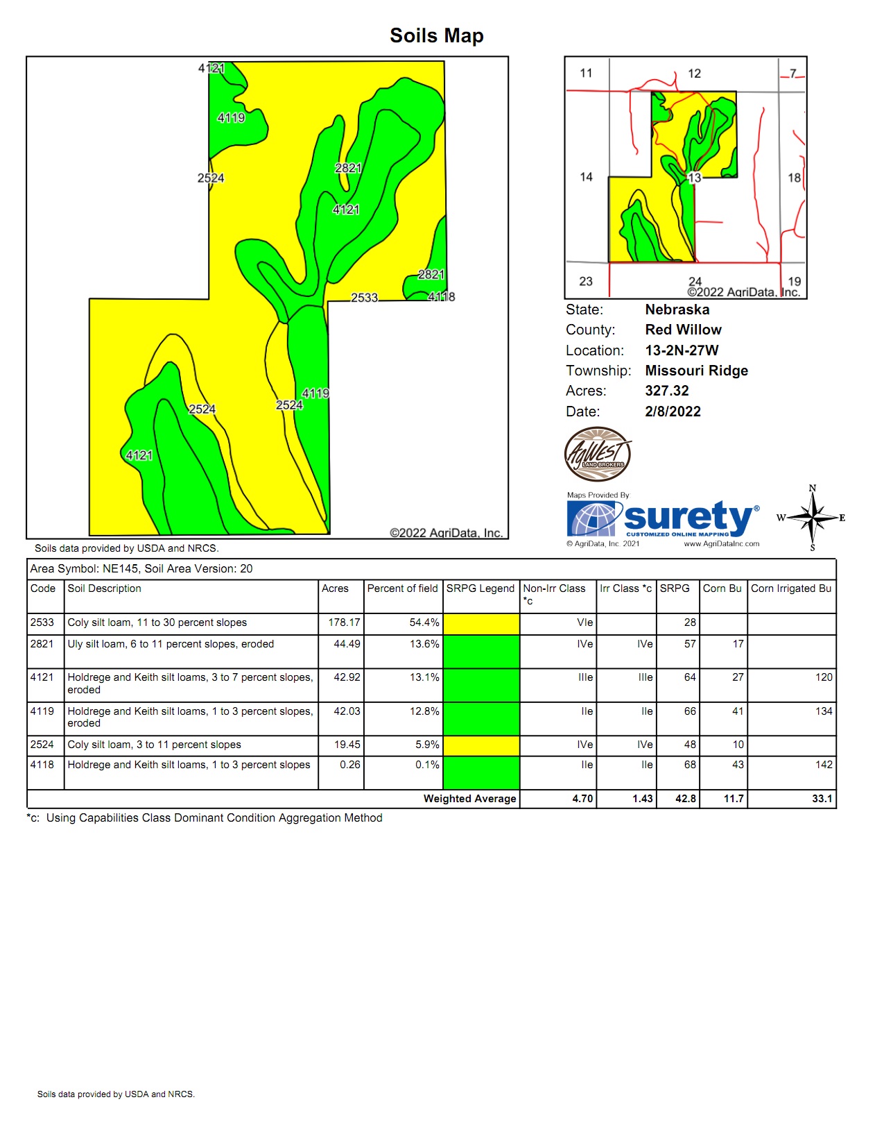 AgWest Land Brokers is proud to offer 2 tracts of dryland cropland being brought to auction on Tuesday, March 15th, 2022 at 10:00 A.M. at the Red Willow County Fairgrounds in McCook, Nebraska. The auction will consist of 762.06 +/- acres (per assessor). Productive soils and great access will make these properties a great addition to any operation!