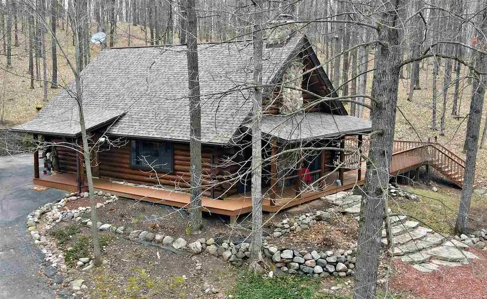 This custom built, full log home sets on a hillside surrounded by a hardwood forest. Holmes Creek, a Class 1 trout stream, flows across the entire south parcel. The log home was designed in an open space concept with the kitchen, living room, dining area and bedroom flowing together providing living space instead of private spaces. Relax in the sauna or lounge on the 3 tier deck with fire pit. The 77 acres feature hardwoods that meld into low land along the creek then to rolling hills with pines. A quarry for a shooting range and a small pond with apple trees round out this diverse land. Countless opportunities for deer and turkey hunting across the entire area. Marinette County offers 1000's of acres of county forests, numerous waterfalls and an abundance of rivers and lakes.