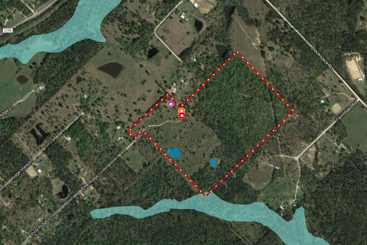 Research Parcel InformationFrom Houston on I-45 N, take exit 101, turn right on FM 1375, follow to SH 75 and turn left. Follow for 5 miles to FM 2296, turn right, follow 1.5 miles to Pine Ridge Drive, turn right. Go over railroad tracks & follow Pine Ridge to dead end. No sign