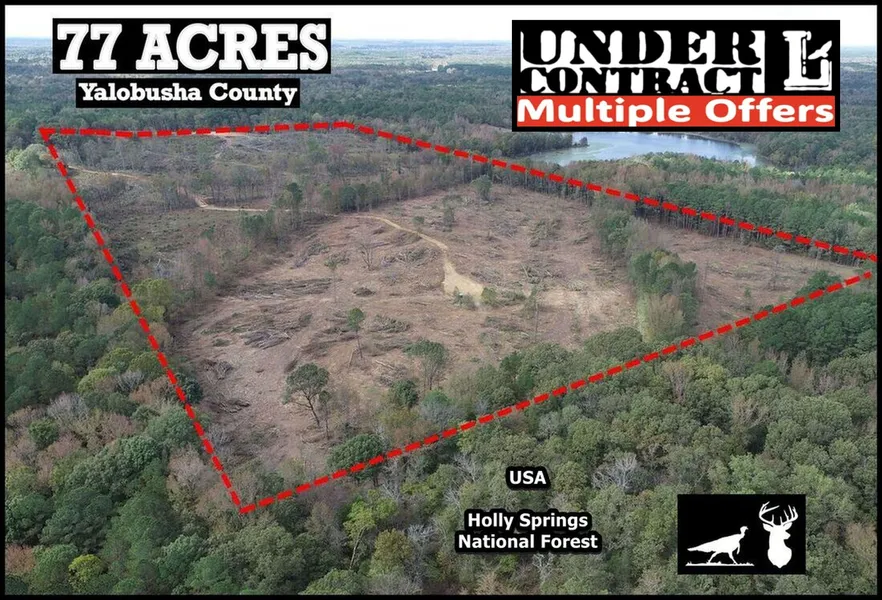 Recently cleared 77 acres - deer and turkey joining the Holly Springs National Forest. This is the largest of four tracts in the area being offered. The property is a third of a mile north of CR 154, and it has about 390 feet of paved frontage on CR 239. A couple of small creeks cut through, and there's also a tiny pond to help add appeal for the wildlife and a bonus for anyone with plans for future livestock.