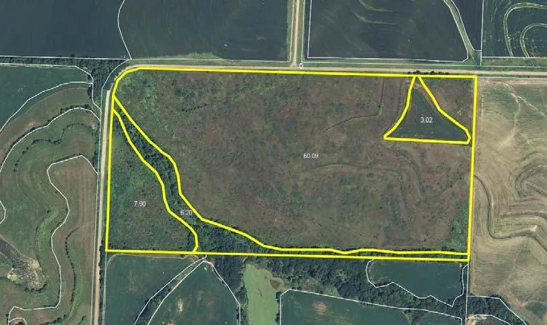 77 acres, m/l, with 71.01 terraced crop acres and CSR of 61.4.