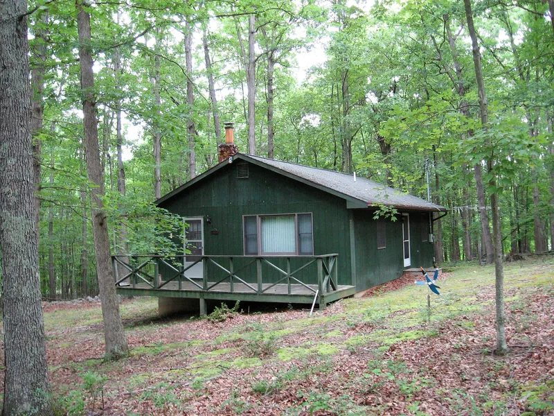 Over the river and into the woods! Simplistic cabin on 4.72 wooded acres with deeded water access within 1 mile. 2 bedrooms, 1 bath, cathedral ceilings, stone chimney w/ woodstove, Anderson windows, washer/dryer. Easy access and lots of land to roam-2 lots sold as one parcel.