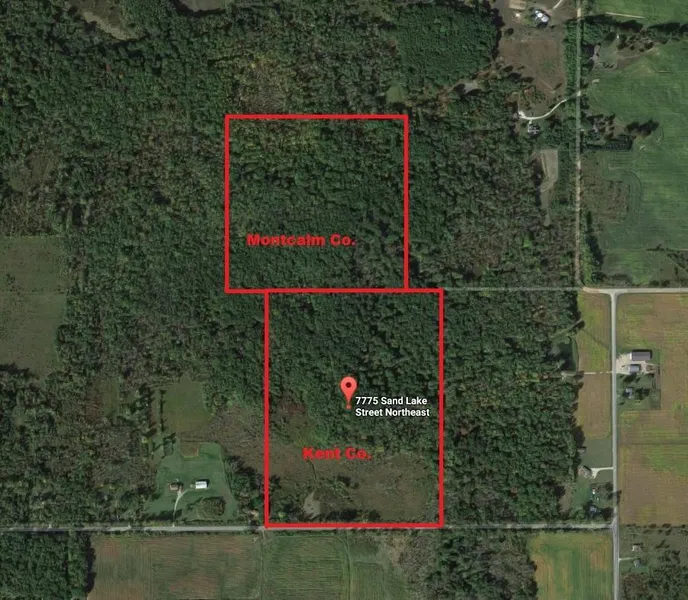 Here is your opportunity to own close to 100 acres of property located within two separate counties! One parcel is located in northern Kent County and the other connecting parcel is located in southern Montcalm County, just East of Sand Lake. This property has everything necessary to hold and grow mature whitetails....there is water, thick cover, mast crops, several wild apple trees, bedding areas and lots of large mature trees! There are definitely some bruiser bucks calling this property home with the abundance and size of tracks I seen while walking this property! There is an open area up front by the paved road frontage with a buck pole great for parking your camper or maybe even place a small cabin while you are hunting those big bucks and those gobblers! There is a wetland area towards the front portion of the ...