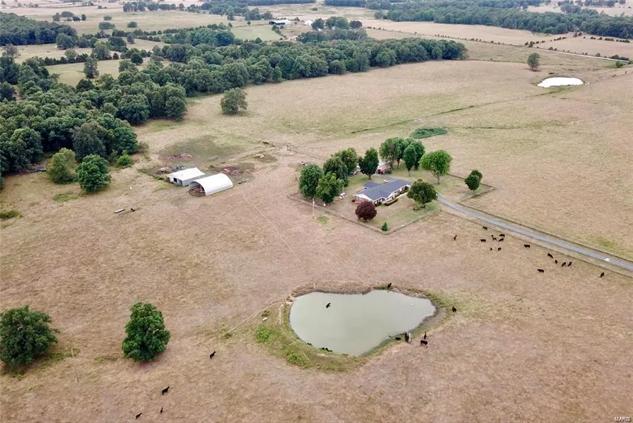 Make your home and raise your own beef on this beautiful 78.72 acre farm with 5 bedrooms, 2 1/2 bath home with full walk-out basement. This home has formal living room, separate dining room (being used as an office) & family room with brick wood burning fireplace with built in bookshelves. The kitchen features double ovens, refrigerator and breakfast bar. Included in the home are 3 main level bedrooms & 2 1/2 baths. The lower level includes 2 bedrooms, family room, kitchen, laundry room/utility room, water softener & tons of storage. There is a covered front porch, screened in back porch & a 2 car attached garage, also with storage. HVAC/Heat pump appx 8yrs old. New roof all the way down Sept 2016, This farm includes a Quonset Hay Shed, 2 stocked spring fed ponds, deep well, 2 frost free waterers, fenced, cross fenced with some electric fence, detached shop/garage, asphalt driveway from paved road, barn and mostly level lot. This is an all electric, Gold Medallion Home