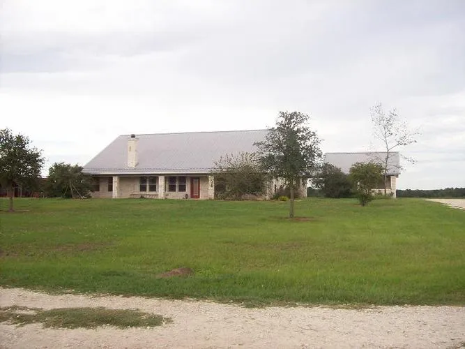 Beautiful Hill Country Style Home, recently built in 2002, features large front and rear porches overlooking the rolling countryside. The 3-2.5-2, 3600 plus square foot offers numerous custom features, including spacious master bedroom/bathroom suite, island with sink in kitchen, 18 feet tall ceiling in Great Room, rock fireplace, columns, and arches, tile floors, solid surface countertops, large utility room with 1/2 bath and complete with office or computer room. The home features an off white Limestone exterior with metal roof. The many additional improvements consist of 70' x 75 horse barn with custom stalls and turnouts, feed/tack room, covered trailer parking area, and much more. Also a large 70' X 100' steel equipment barn, a nice 2-1-2 guest home, rock drives, and a metal storage barn. A 200' x 400' lighted roping arena is convienently located to the horse barn and is on good sandy soil. The arena comes complete with return ally, chutes, boxes and etc. The land is all fenced with very good fencing, most of it being net wire, and offers a number of small traps and/or pens