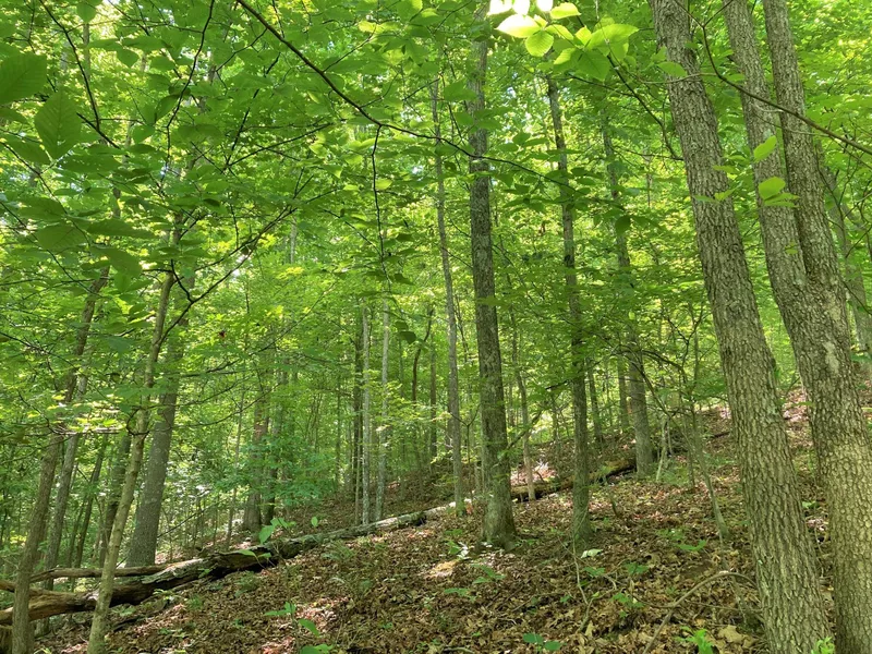 About 90% of the land is wooded, with the rest being in fields. The woods are mainly red oak, tulip poplar, hickory, pine and some white oak. This property has not been timbered recently, but there is probably not much marketable timber on it now. The timber rights DO go with the property, which is not always the case in West Virginia. The property is mainly sloping to hilly, but there are a couple of nice flats on the property that would make a nice cabin site or possible building site.