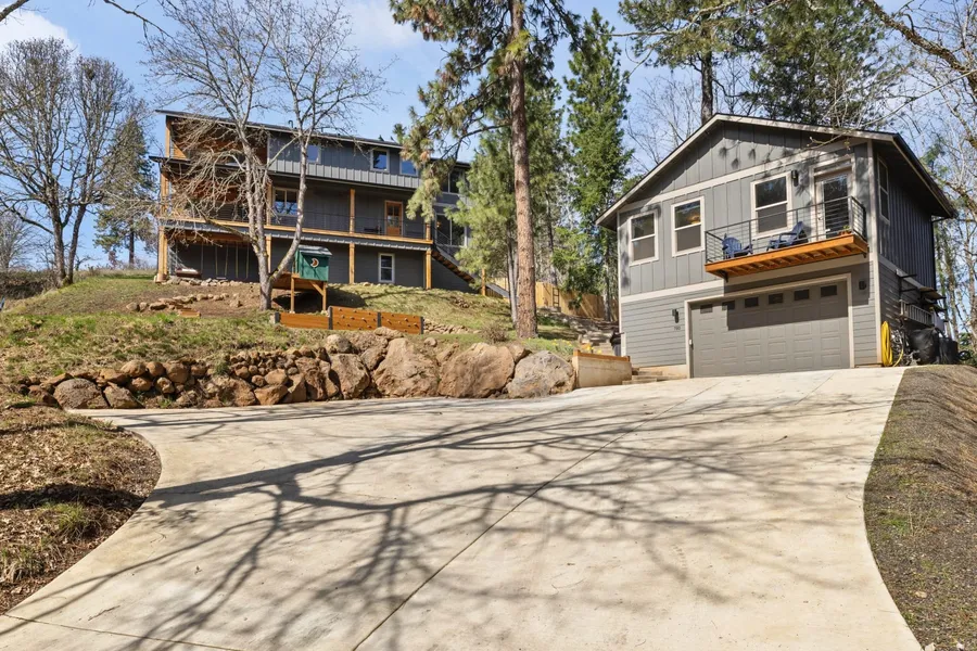 Located on the sought-after east side of Strawberry Mountain, this modern 2021-built home offers rare seclusion just a short walk from downtown White Salmon. Set on a serene, wind-protected 1-acre lot, it feels like a private treehouse retreat surrounded by mature trees and wildlife. The main home includes 3 bedrooms, 2.5 bathrooms, and an office, with an open floor plan, high-end finishes, and abundant natural light. Large sliding doors open to a covered deck with a gas heater, perfect for year-round indoor-outdoor living. A detached garage houses a licensed 1-bed, 1-bath ADU with its own entrance and deck'ideal for guests, a home office, or rental income. Enjoy the peaceful setting with visits from deer, turkeys, and owls, while remaining minutes from schools, cafes, and Columbia River recreation. Whether you're relaxing in the hot tub under the stars or entertaining by the fire pit, t...