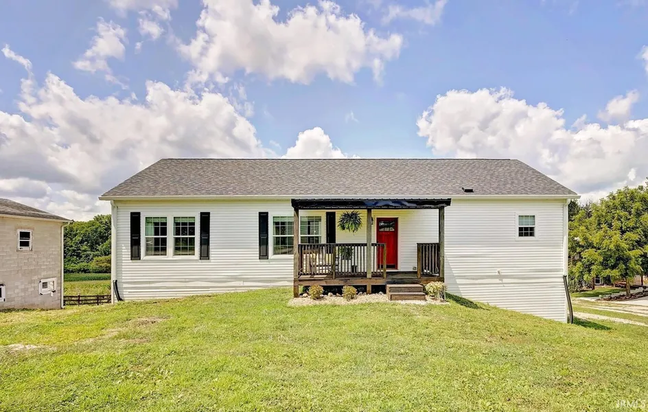 GREAT PRICE FOR 1600 SF over 1600 SF BSMT!!! This charming newer Clear Creek home blends modern farmhouse style with the peace of country living on 5.25 acres. Recent additions include a brand-new back deck off the kitchen, a large chicken coop for homesteading, and a new whole house generator hookup for peace of mind in any season. The home offers 1,600 square feet of living space above a nearly finished 1,600-square-foot basement, with 9-foot ceilings on the main level creating an open, airy feel. At its heart is a beautifully appointed kitchen and living room, perfect for gathering. Updates include new mirrors, light fixtures, and a front porch with metal-wrapped posts. A two-story studio with large garage offers flexible space for a workshop, office, or art studio. You'll also find two garden plots, a detached garage, high-speed fiber internet, and room to roam. Just an hour from downtown Indy, 45 minutes to IU Bloomington, and 30 to DePauw, this home offers rural serenity with easy access to the city.
