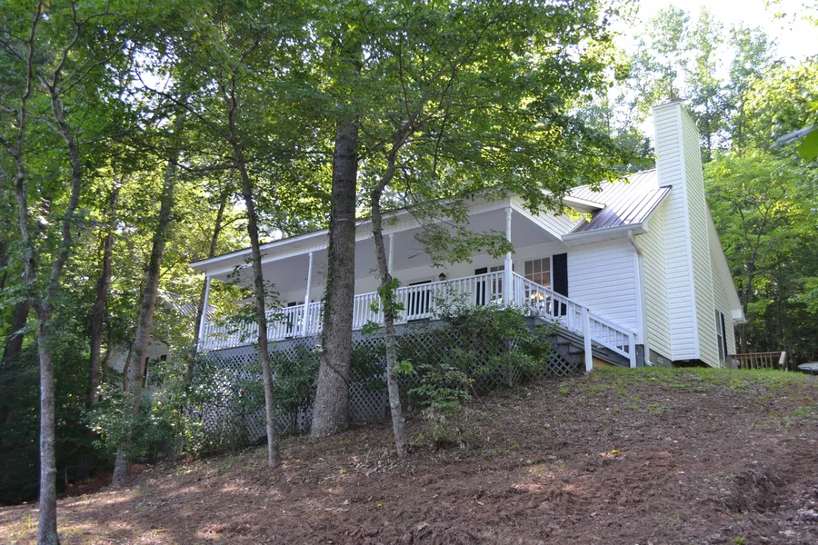 LAKE HOME IN PEACEFUL COVE! This 2 bedroom/2 bathroom home on Lake Wedowee has over 220 feet of year round water frontage. The kitchen is open to the living/dining space. In the living space there is a gas stone fireplace. A spacious covered porch is off of the living area. Both bedrooms have a full bathroom. Paved driveway and large 2 car garage. There is a wooden deck with views of the lake that is a great spot to grill out. The walk down to the water is gentle, and there is a private floating dock.