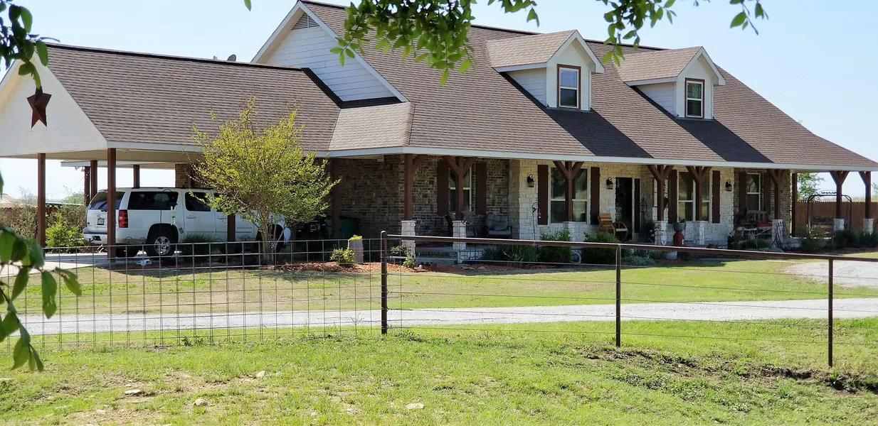 Country charm at its best! Less than ten minutes from I-35 and Sanger, home sits on rolling 12 acres (plus or minus) that boast beautiful sunrises and sunsets. Spacious two story home features over 3,800 square ft with open floor plan, wood burning fireplace, alder wood cabinets, five bedroom (master downstairs), three full baths, office-bedroom and additional game or media room upstairs. Property includes large mature trees, fenced and cross fenced pastures, pond, 47x35 workshop with 1 bedroom, 1 bath living quarter, two 12 foot roll up doors, 4 stalls, and tack room. Information deemed reliable but not guaranteed. Buyer and buyers agent to verify that all information contained herin is accurate.